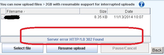 This error means that the URL configured in JFileUpload redirects to another URL. Usually, it means that the initial URL requires authentication and credentials (or security token such as cookie) passed by JFileUpload is not correct (or not the one expected), then the server redirects to a login page.